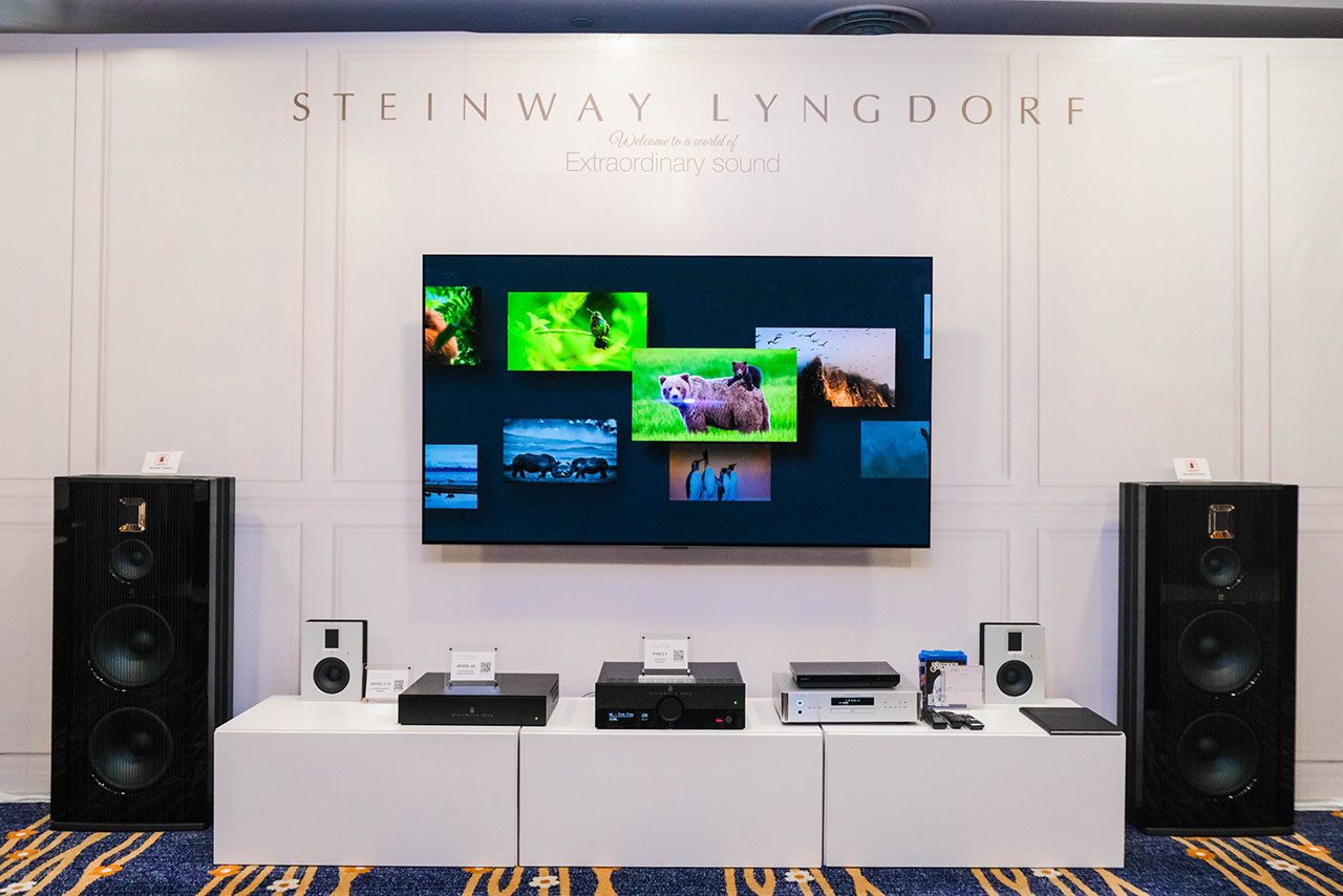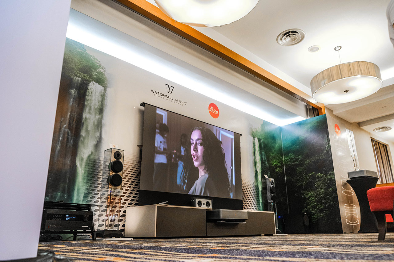 Visitors explored four setups showcasing tailored entertainment experiences. Highlights included the Sony VPL-XW7000ES projector with 9.2.4 Aperion Audio System for immersive home theater, the Steinway Lyngdorf Model A (2.0) and Model S-15 (2.2) for pure sound excellence, the powerful Lyngdorf Cue-100 loudspeakers, and a living room transformation featuring the Leica Cine 1 laser TV and Waterfall Audio Victoria XT speakers, seamlessly blending lifestyle with functionality.